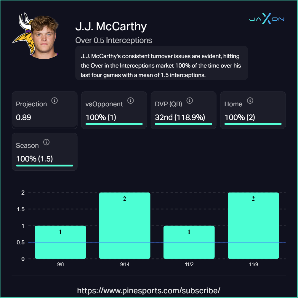 Young signal-callers get exposed in divisional games. Vikings rookie J.J. McCarthy's turnover issues become particularly concerning against a Bears defense that's generated twenty takeaways and has seen him on film multiple times.