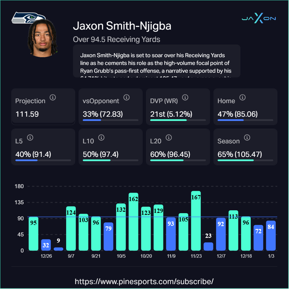 Jaxon Smith-Njigba O94.5 Receiving Yards (-112)