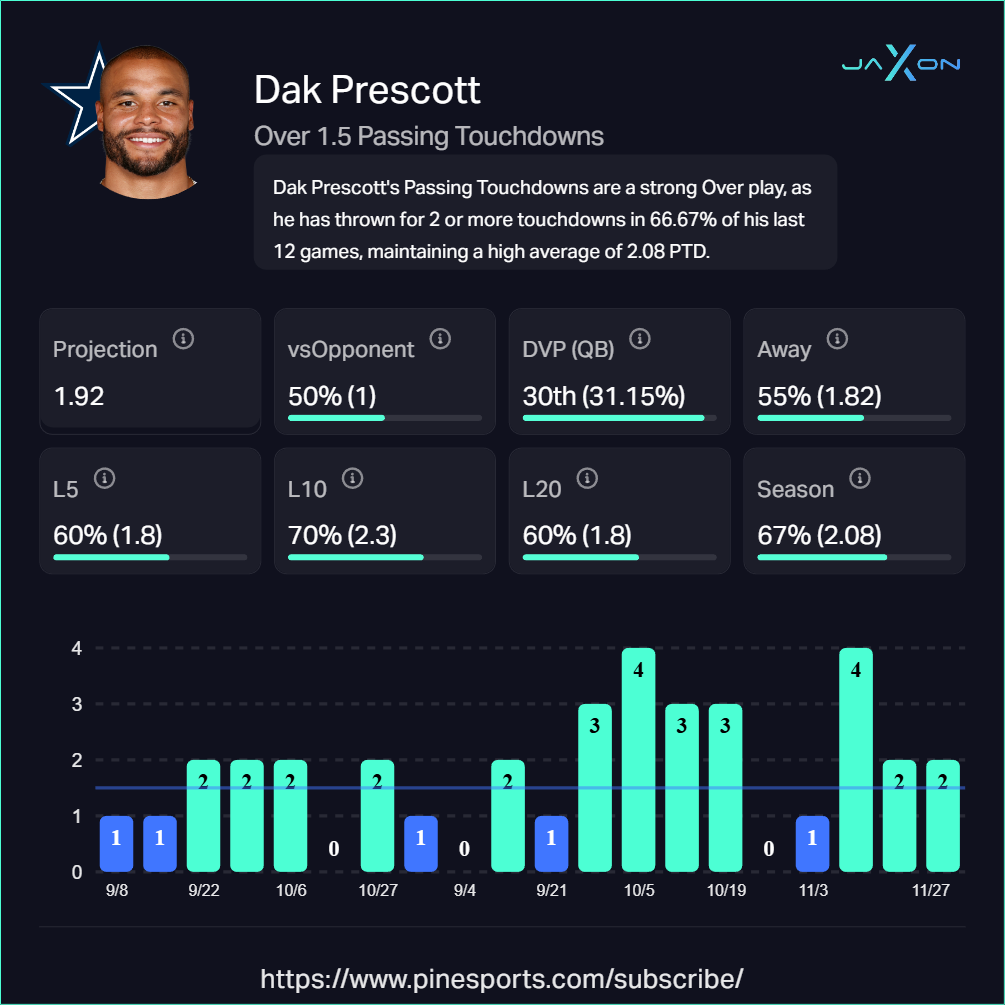 Dak Prescott Over 1.5 Passing Touchdowns (-175)