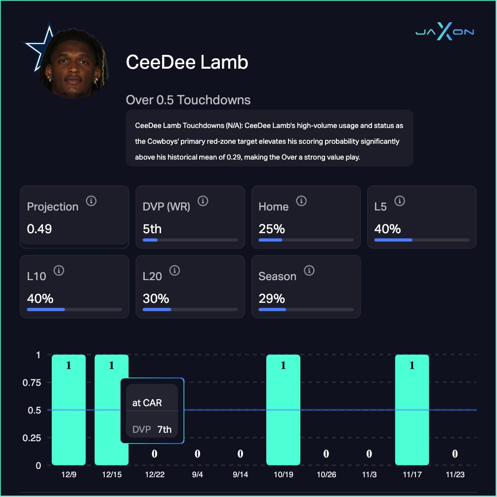 At this price, with this volume, against this specific defensive profile, this is where value meets execution. Take Lamb to hit paydirt at +136.