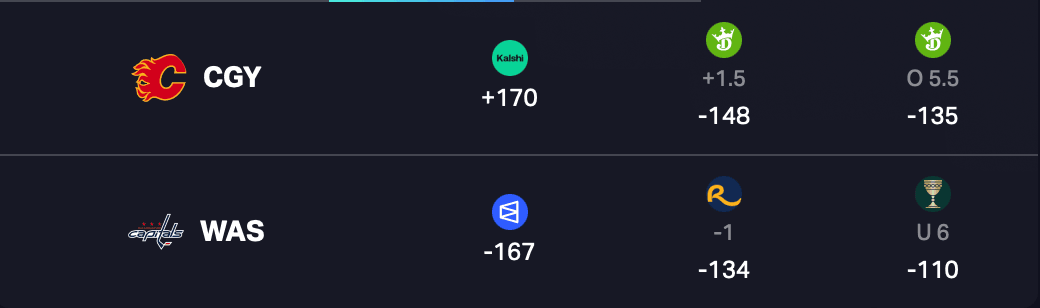 Flames at Capitals O5.5 Goals (-135)