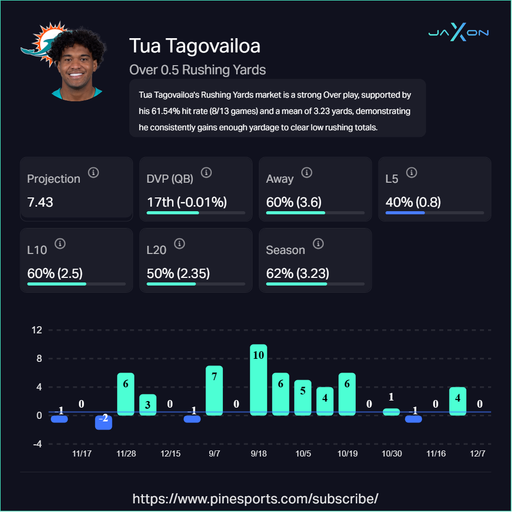 But, in this environment against this opponent, now is the time to back a Tagovailoa rushing prop: