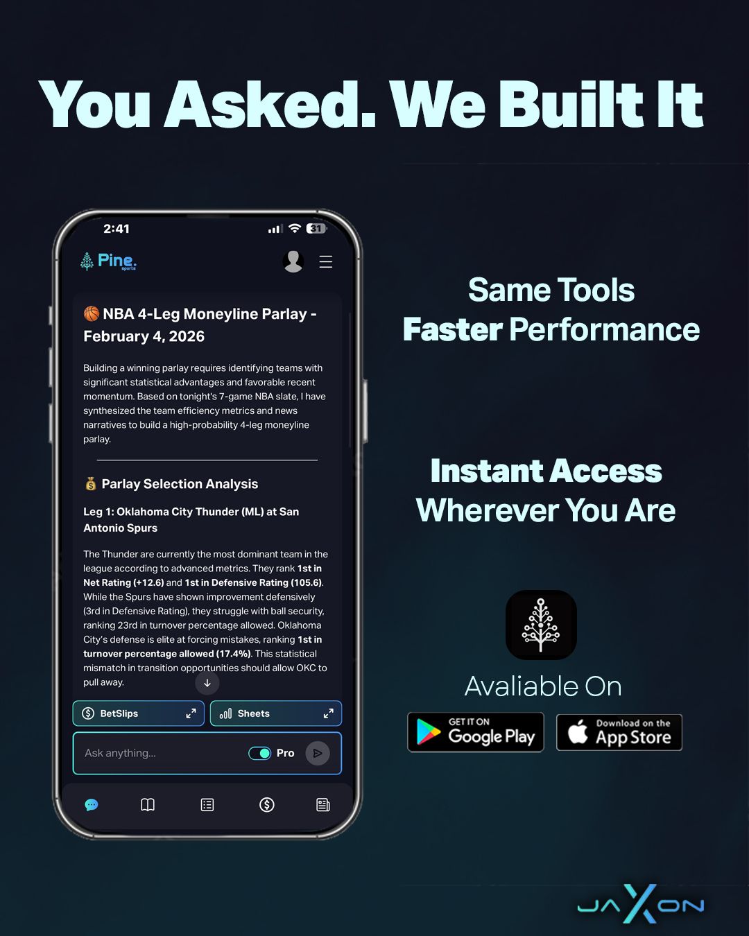 Live odds, parlay breakdowns, deep stat analysis — wherever you are, whenever you need it.