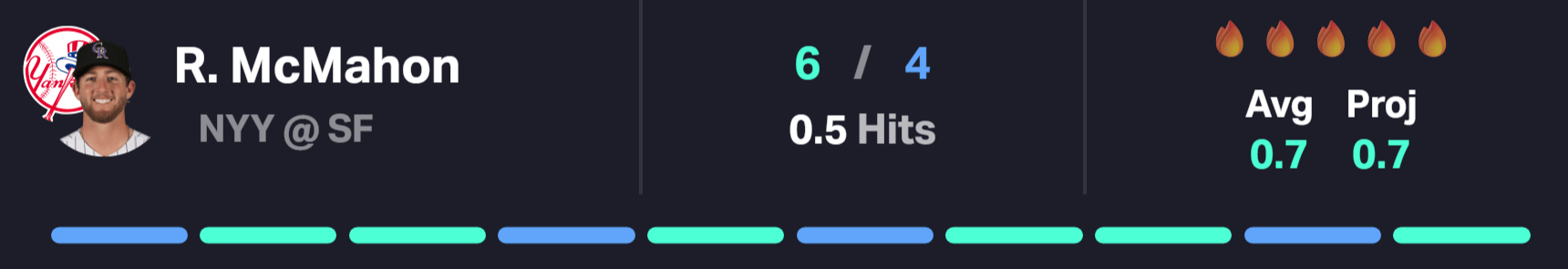 McMahon hit the over against San Francisco in five of seven games in 2025, averaging 2.29 hits, runs, and RBIs combined per game against them. One hit against a pitcher who surrendered 114 hits to lefties last season is a low bar for a hitter with this track record against them.