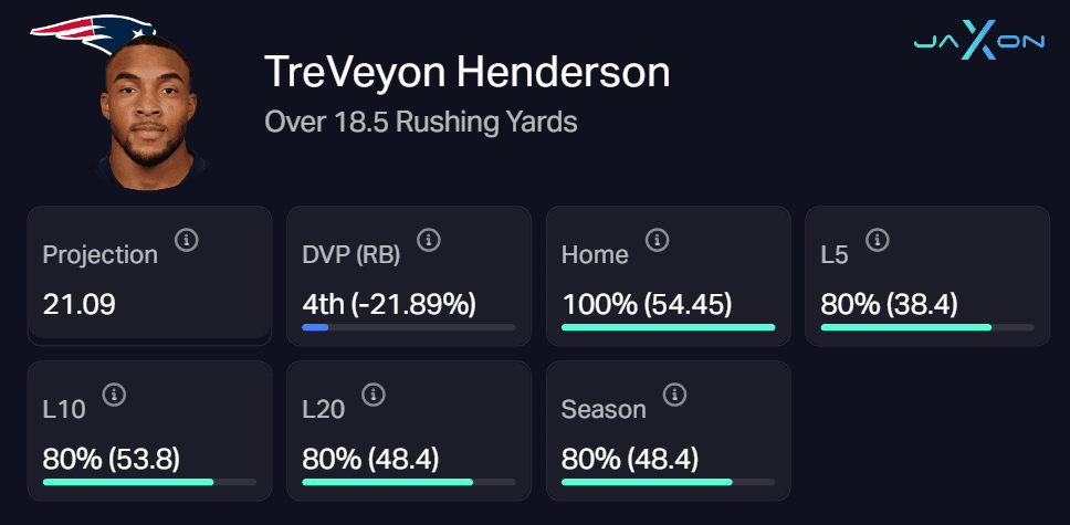 TreVeyon Henderson Over 17.5 Rushing Yards (-112)